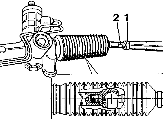 Then adjust toe at hexagon No. 2 of the track rod(s) after loosening the lock nut(s) No. 1. Then tighten the lock nut(s) No. 1 to the prescribed tightening torque.