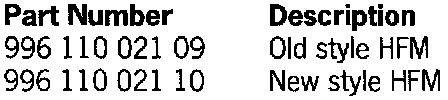 A new HMF is being introduced as of January 31, 2000. The new HMF, which is less sensitive to dirt particles, is being installed in production starting with the VIN's shown.