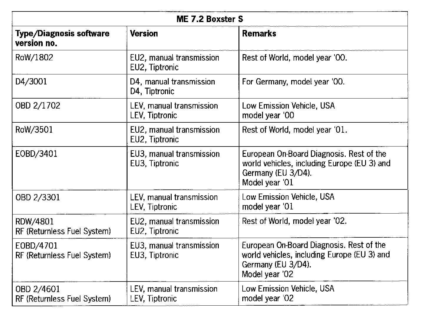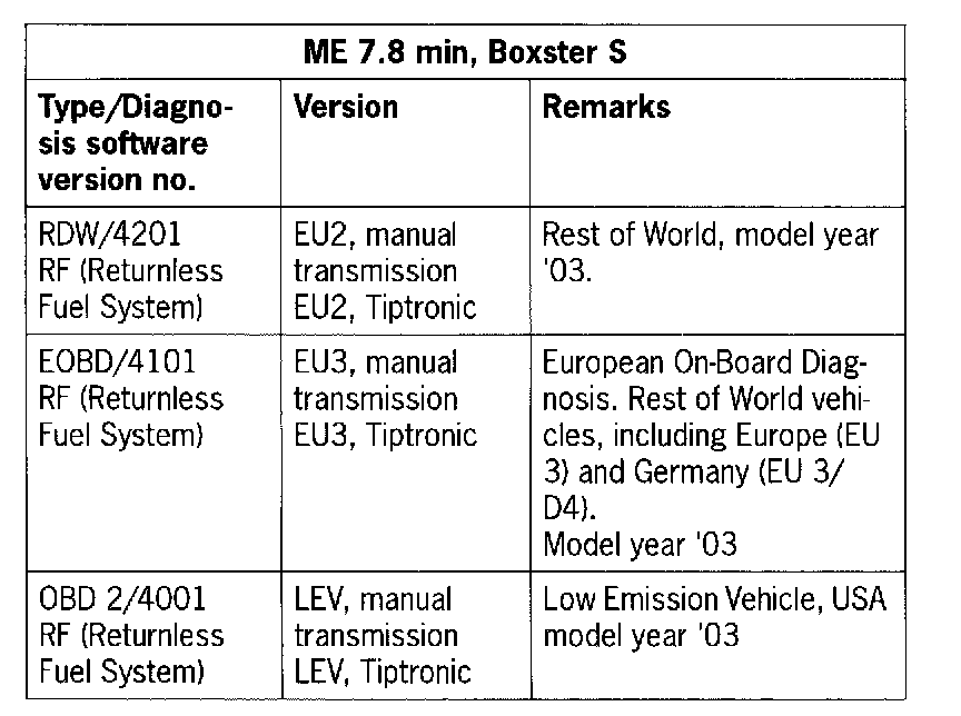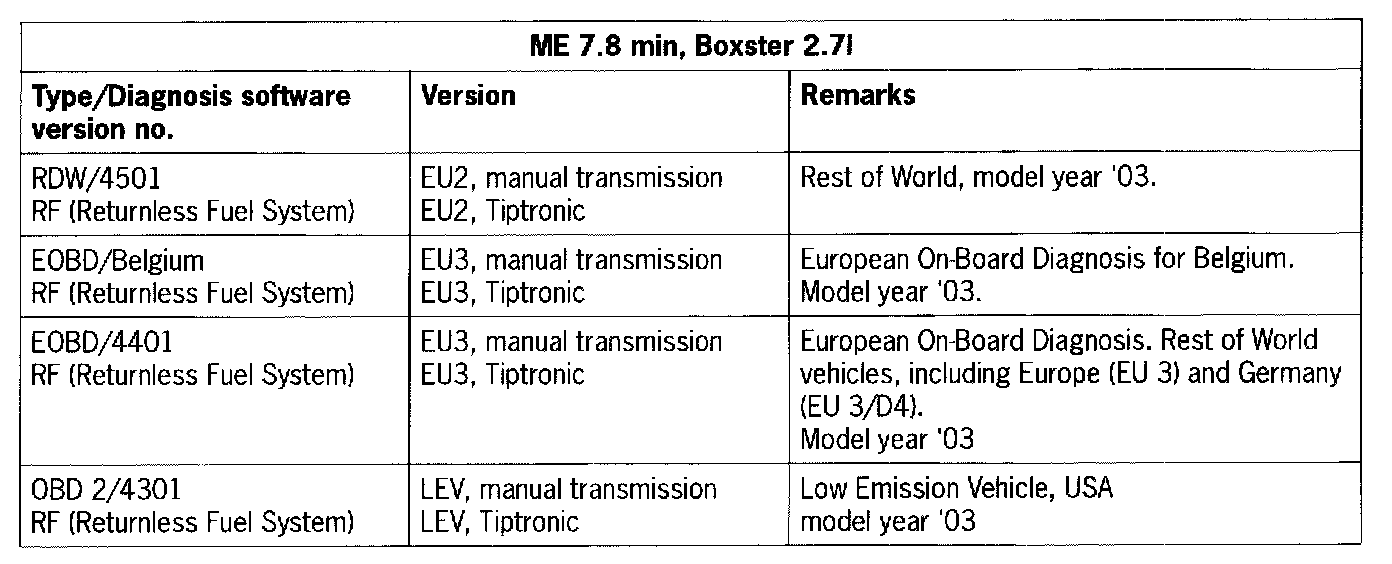 - If the DME control module from a different Boxster vehicle with ME 7.2 is being used, proceed as follows. As a check, the DME code and the immobilizer code of the vehicle in which the control module is being installed (NEW) and of the vehicle from which the control module has been removed (OLD) are required.