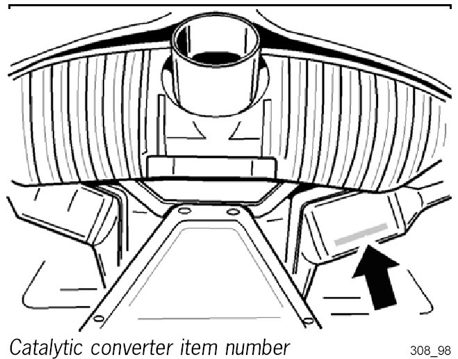Figure 308_98 shows where the catalytic converter item number can be found on the vehicle.