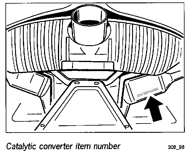 The figure shows where the catalytic converter item number can be found on the vehicle.