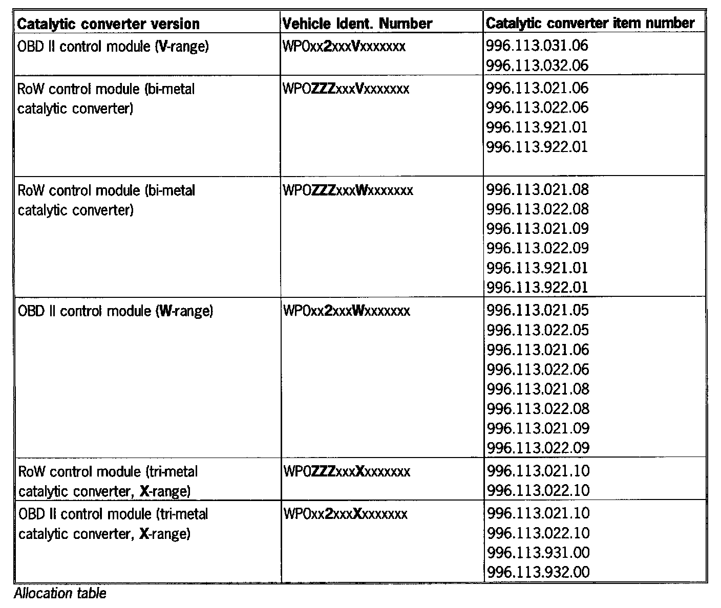 > Ensure correct allocation of the data record in the control module to the installed catalytic converter (refer to the allocation table).