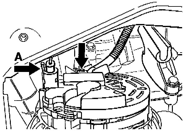 8. Carefully pull the generator forward a little and disconnect electrical connections, or press plug connection to the generator housing, release (arrow A) and pull off. Take out generator to the front.