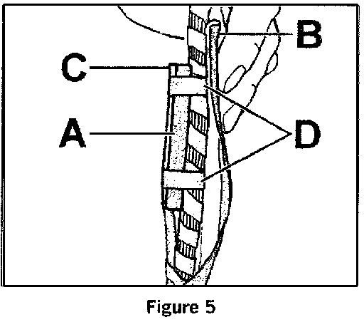 - the sealing strap (Figure 5, Item A) is located across from the strips of adhesive tape on the out- side of the protective sleeve (Figure 5, Item B) and
