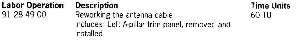 This caused excessive shielding of the antenna toward the outside, reducing the reception strength of the antenna. This lead to the range of the remote control being reduced. To avoid shielding the antenna and to increase the range of the remote control, the routing of the antenna lead in the area of the A-pillar has been changed as of the introduction date listed below.