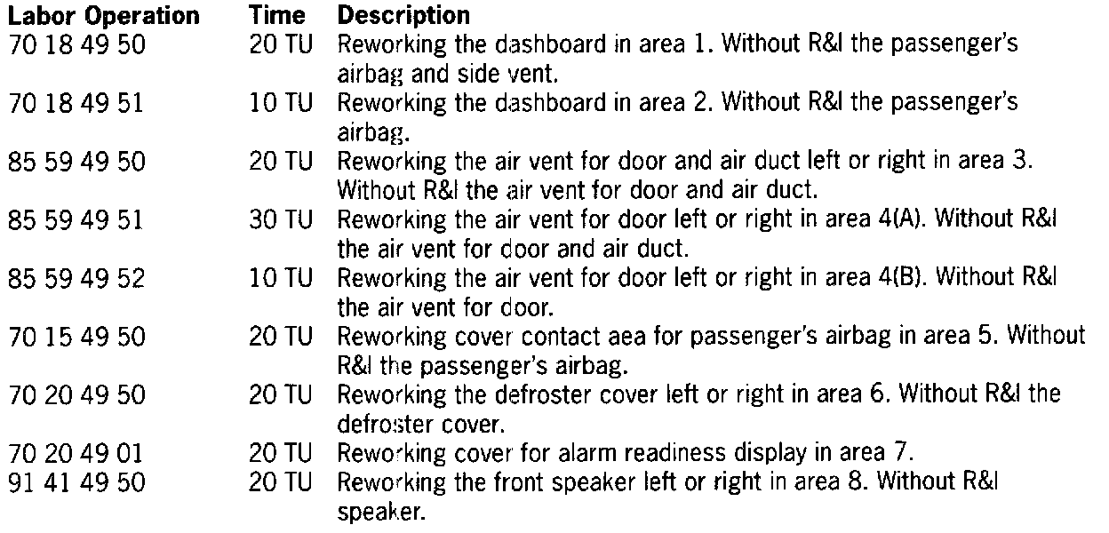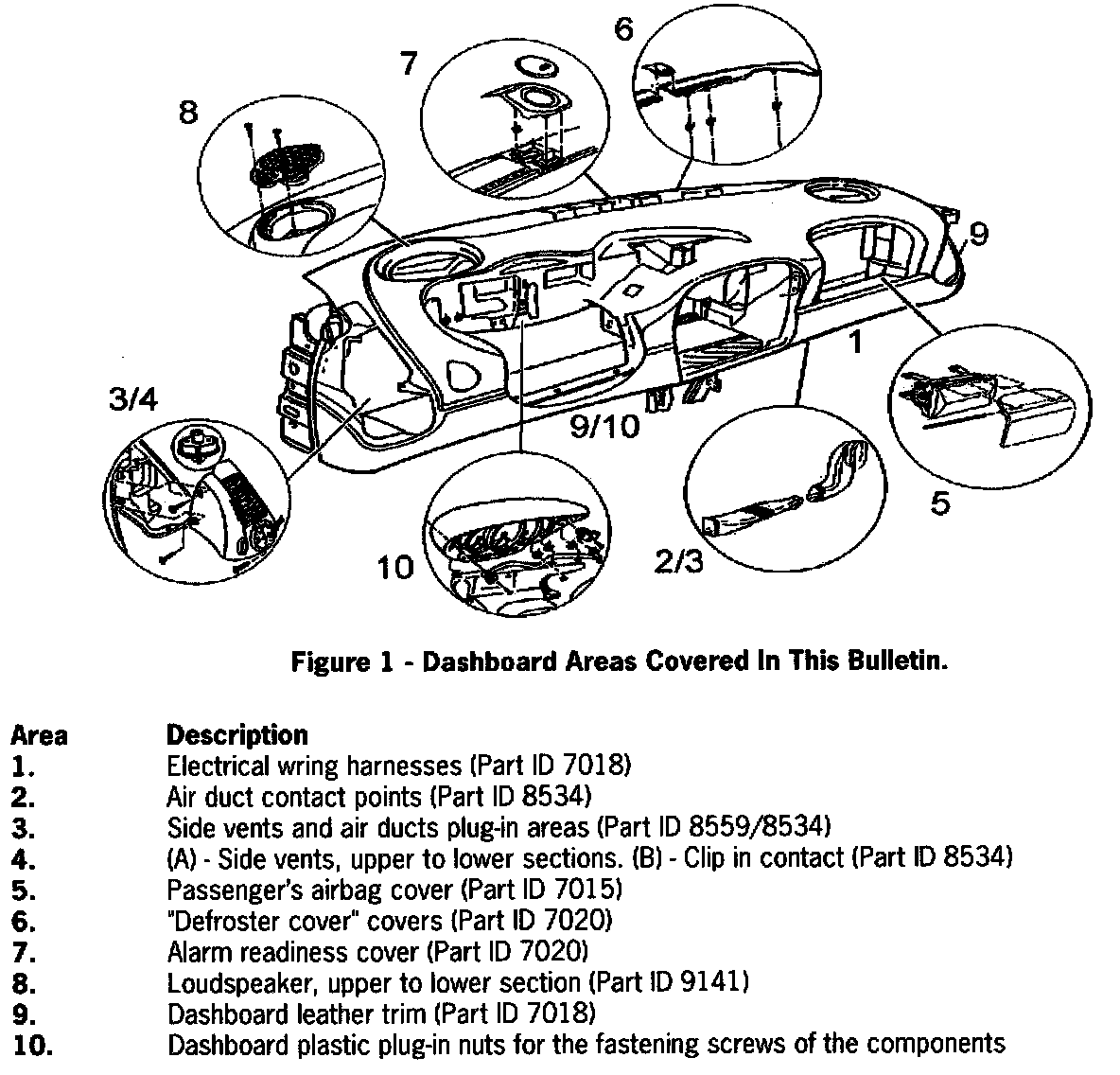 Refer to figure 1 for the listed numbers associated with the noises. In order to remedy noises in the dashboard, the following covers and components should be removed only if necessary.