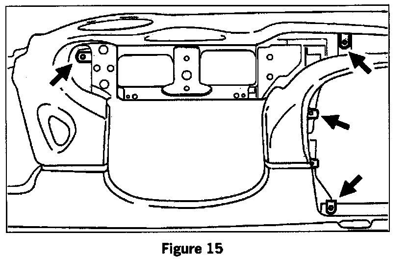 Check the Contact surface for the airbag panel (see arrow in figure 9). If the insulation strips are missing, loose, or have slipped out of position, apply new narrow felt tape strips. See figure 9. While tightening the fastening screws for the airbag unit, have the panel of the passenger's airbag pressed forward evenly by a second person. This will ensure that the panel is under even tension after tightening the bolts.