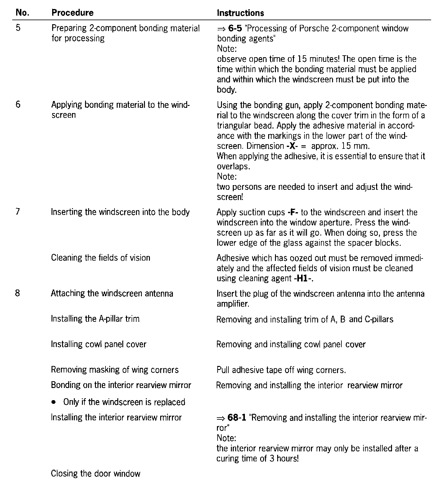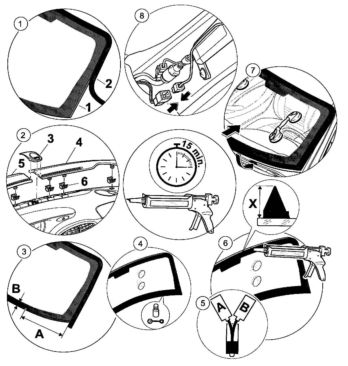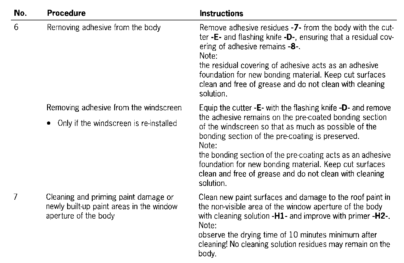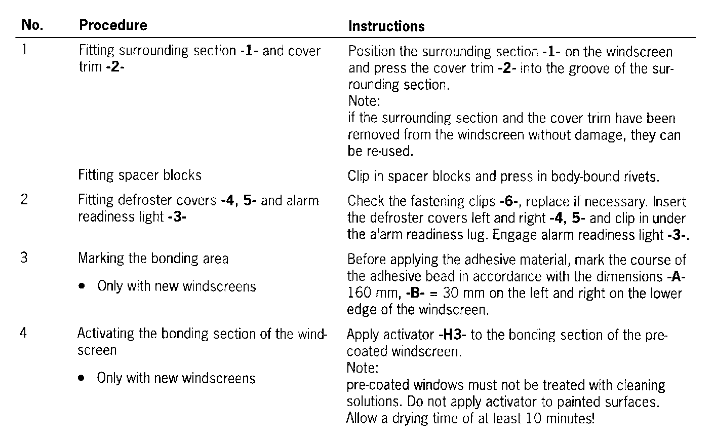 Time between applying adhesive and inserting windscreen: max. 10 min