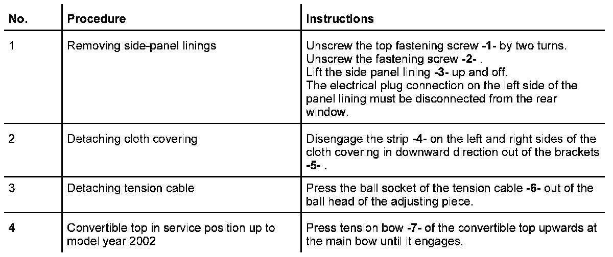 Diagram of convertible-top - up to model year 2002