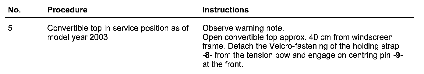 - The convertible top must not be moved forwards by the electric motor in service position.