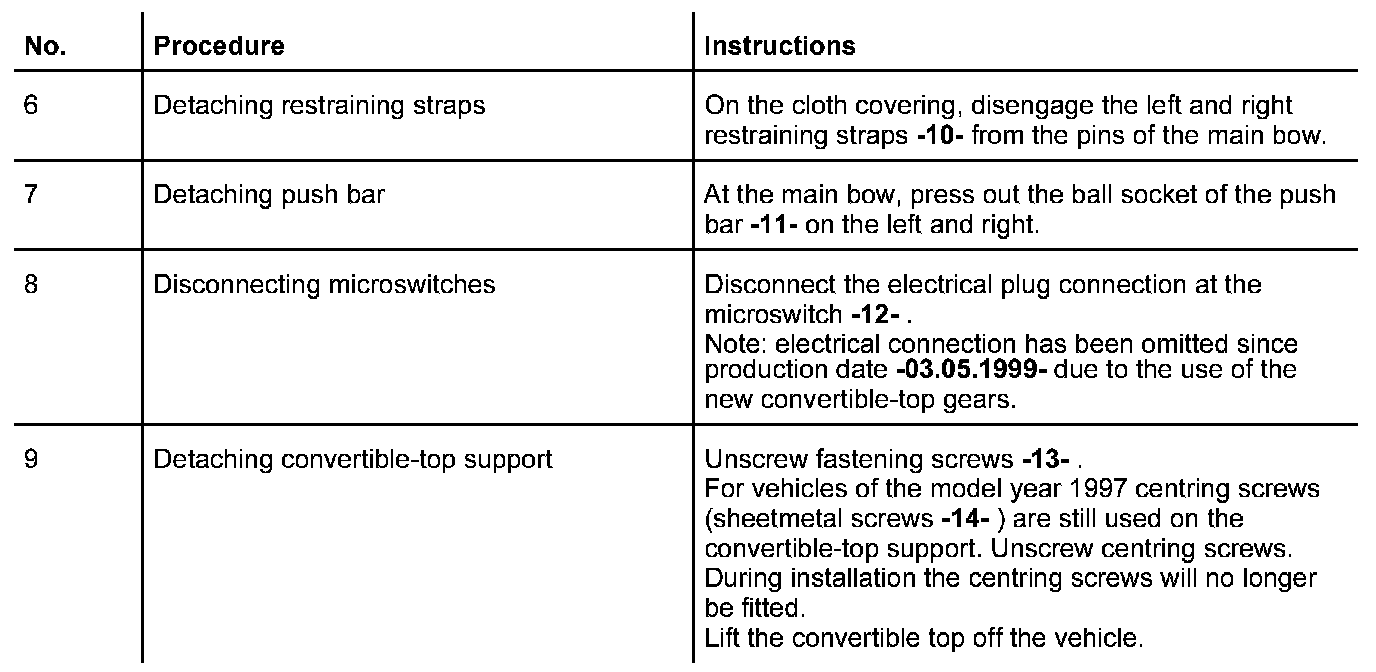 Overview of convertible-top components up to model year 1999