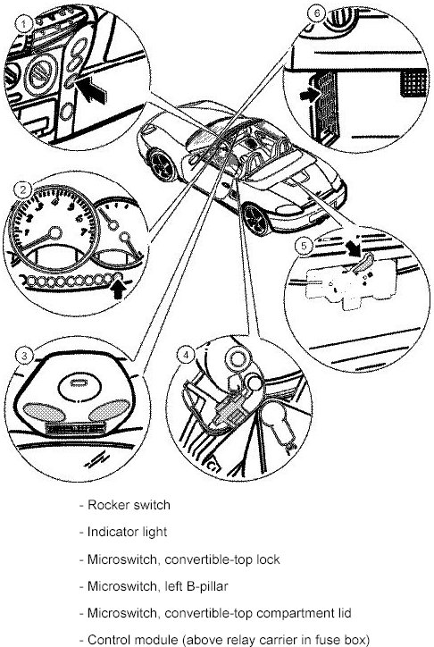 Overview of convertible-top components as of model year 2000