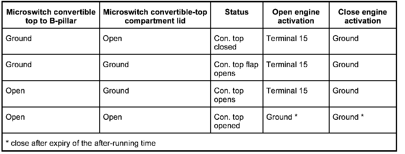 - The "convertible top unlocked" signal is connected to ground.