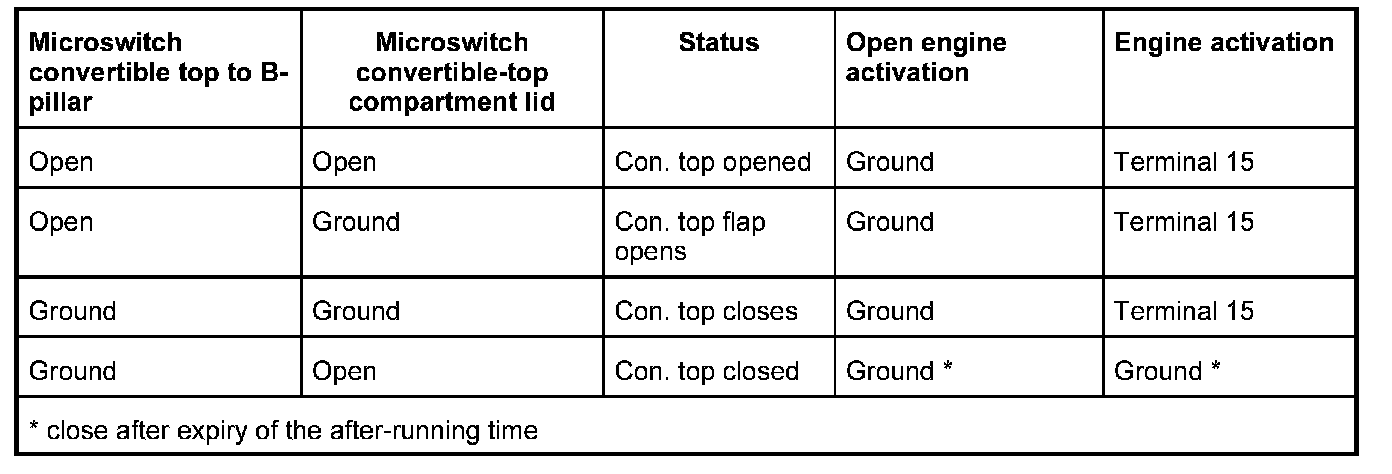 - Operate "close convertible top" rocker switch (ground is connected to the "open" input)