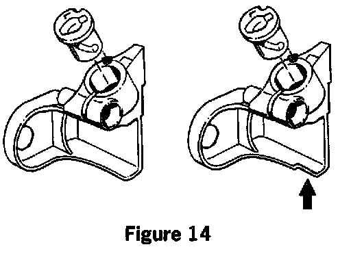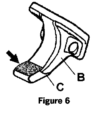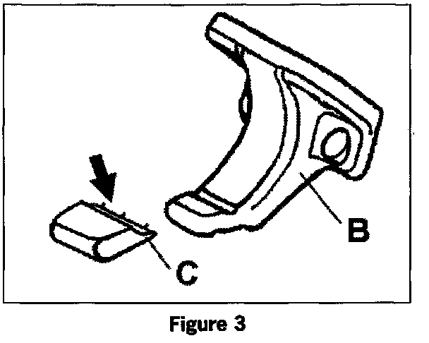 4. Remove the Teflon tape from the forward facing notch of the clamping rail. Clean off any remaining residue from the notch (figure 9, arrow b).