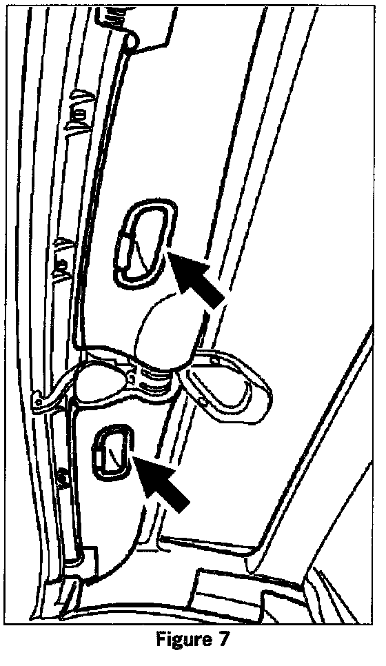 The handgrips, which are integrated in the roof frame to aid in closing, can become detached and cause a rattling noise. The noise can be heard by striking the roof frame (figure 7, arrows).