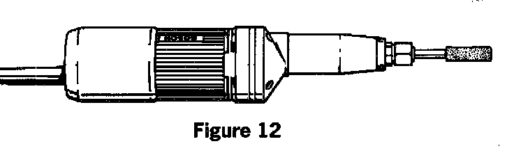 2. Using a straight grinder (figure 12) with a cylindrical grinding bit, grind away a recess in the hard top bracket approx. 2 mm deep x 10 mm wide (arrow in figure 14). Make sure to vacuum up any metal chips deposited in the vehicle.