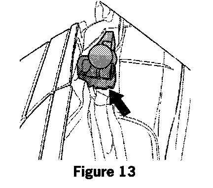 1. Open the convertible top almost completely to allow access to the hard top-mounting bracket (arrow in figure 13).