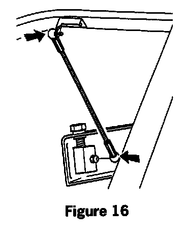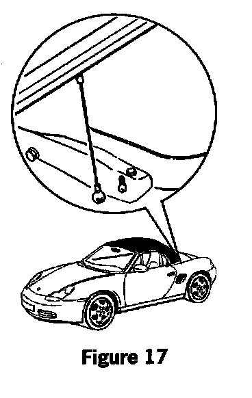 Move the convertible top to the service position and detach the tension cables at both ends. Apply a thin coat of grease on the ball heads (figure 16) then reinstall the cables.