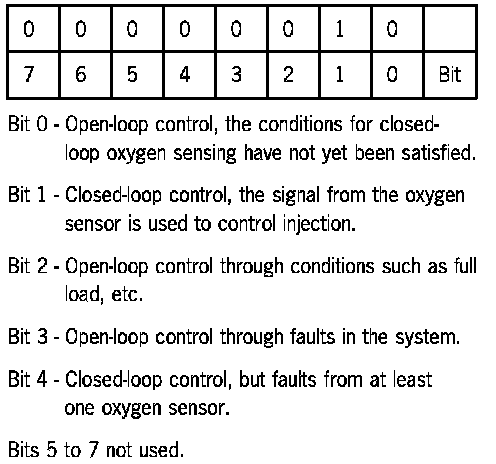 In mode 2 the operating conditions (freeze frame data) at the time of fault entry are displayed. The operating conditions of the fault which occurred first are stored. If a fuel system fault or misfiring fault occurs after this, the data of the fault which occurred first are overwritten.