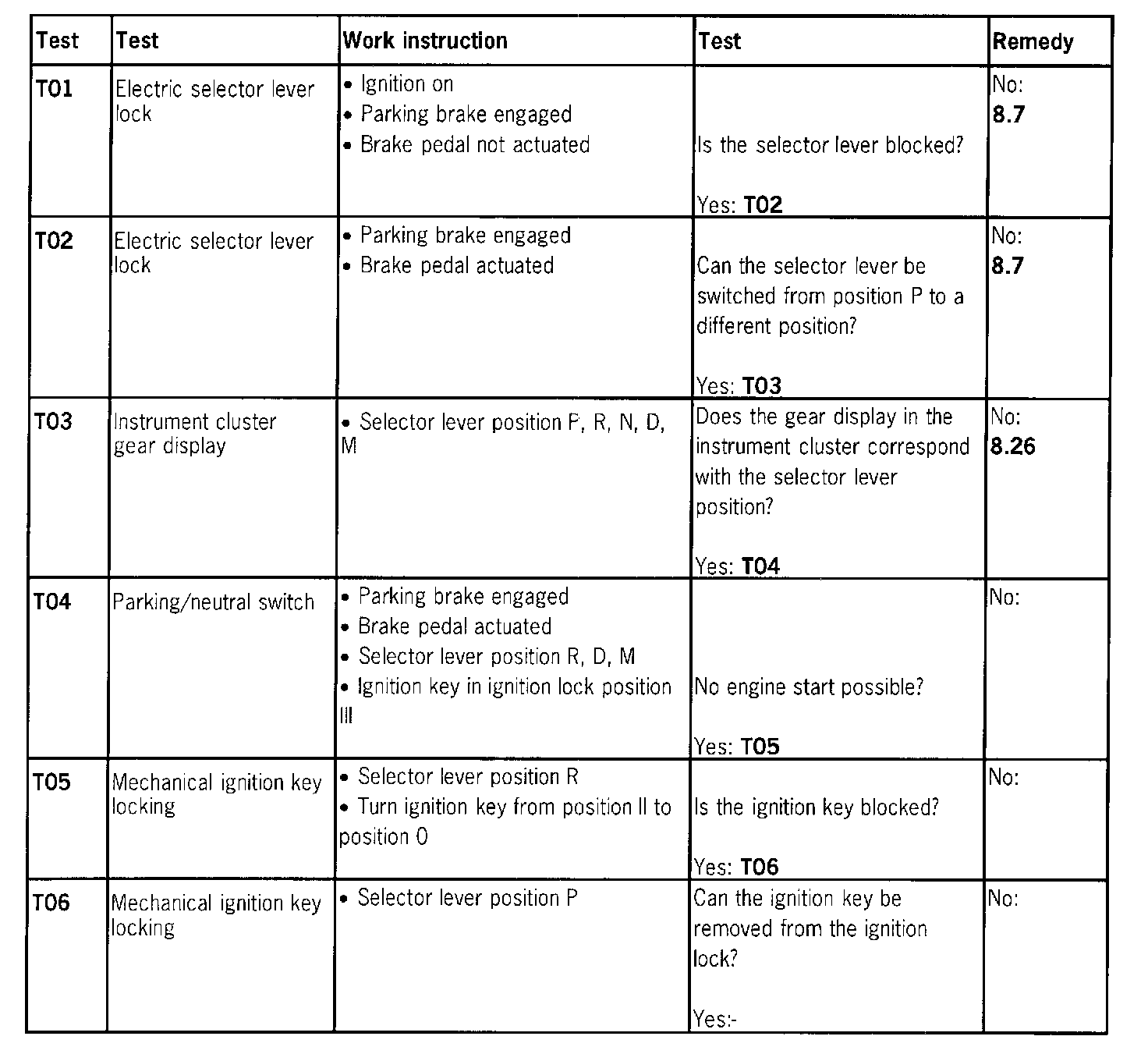 Test T01 - T06:
