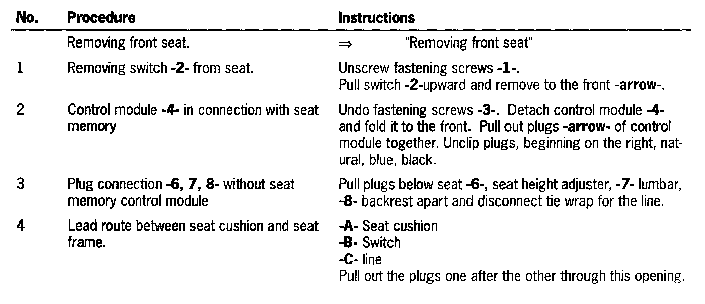 Removing and Installing Switch For Seat Adjustment