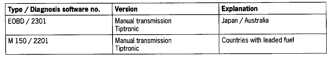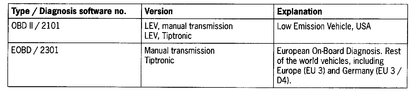 - The listed table is included in the software status 11.0, Porsche System Tester 2.