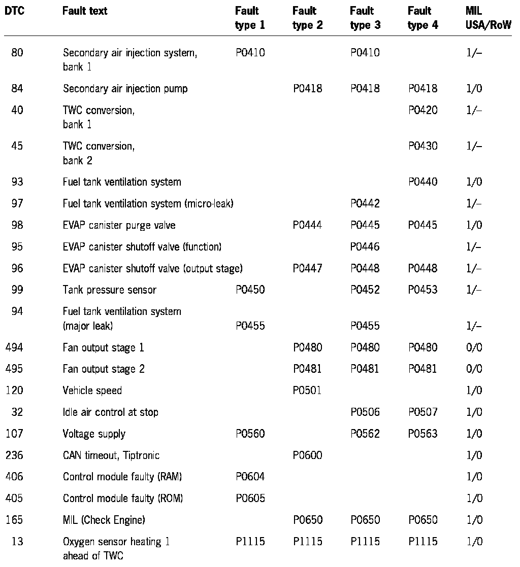 - In the case of Tiptronic vehicles, the Tiptronic fault memory must also be read out, because activation of the Check Engine MIL can also be initiated by the Tiptronic.