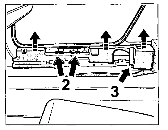3. Unscrew fastening screws -2- and nuts -3- and carefully pull the support up and out of the retaining points.