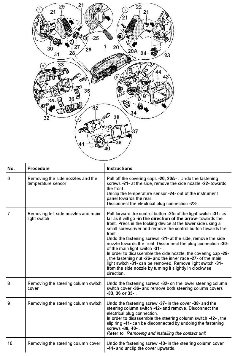 Disassembling the instrument panel