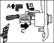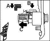 2. Press the lights bracket -arrow B- out to the side with a narrow screwdriver.
