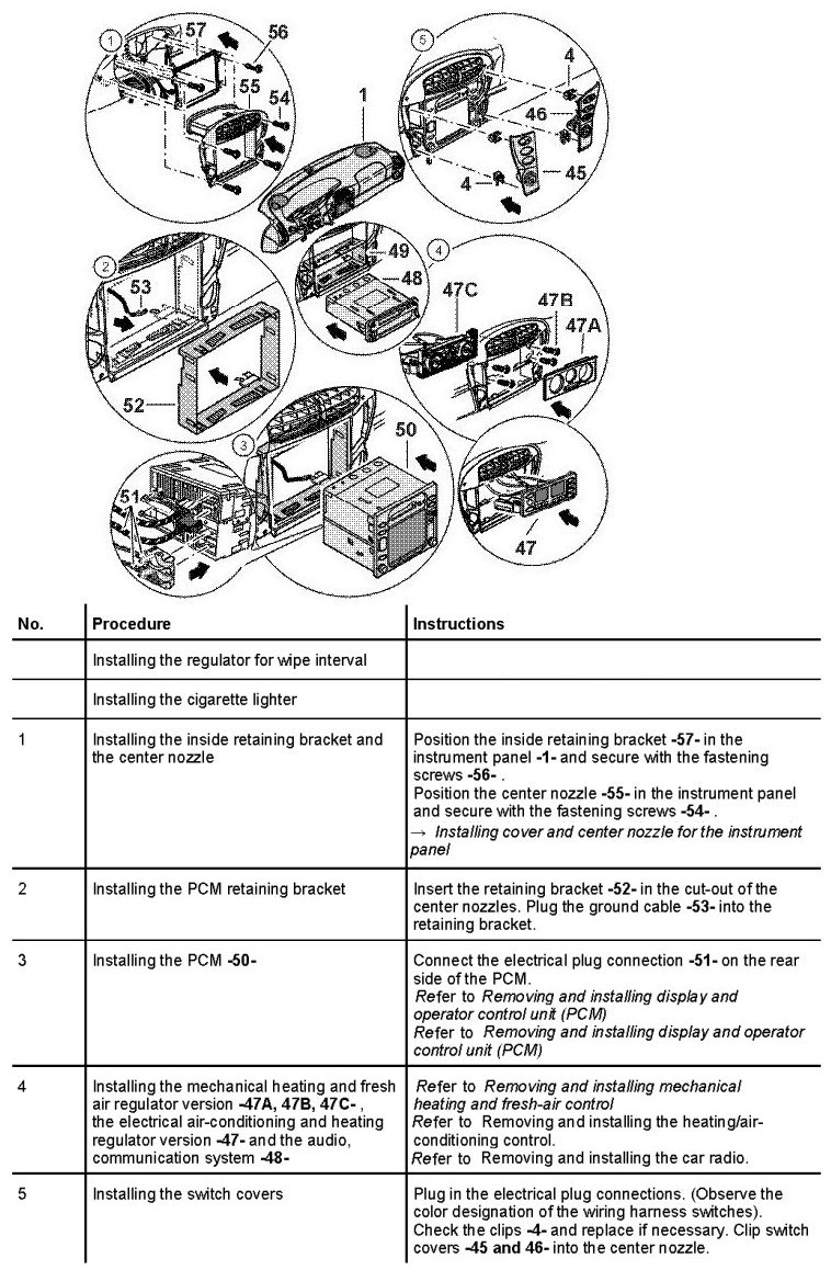 - Refer to Removing and installing display and operator control unit (PCM).