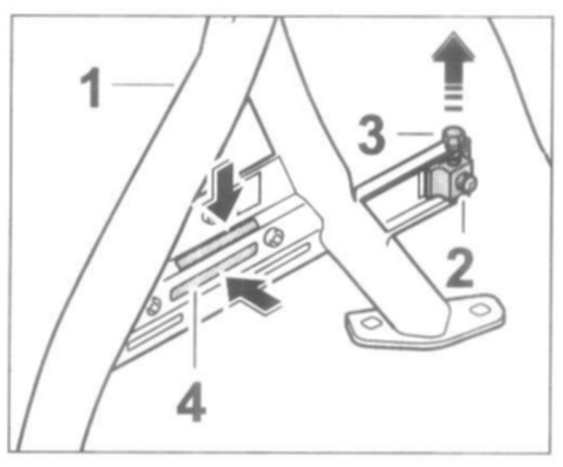 1. Insert the adjusting piece -2-, which is used to brace the tension bow, into the guides of the roll-over bar -1- and fasten the adjusting piece -2- with the fastening screw -3-.