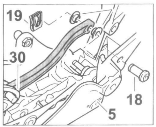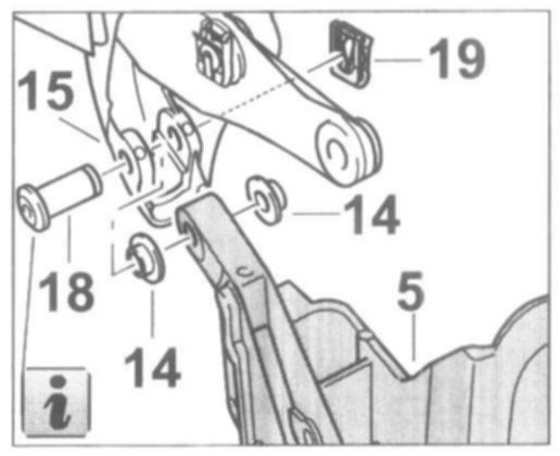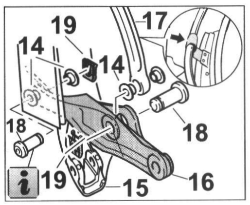 3. Position the push bar -17- on the drive lever -16- and join it with the pin, -18- dia. 8 x 45.