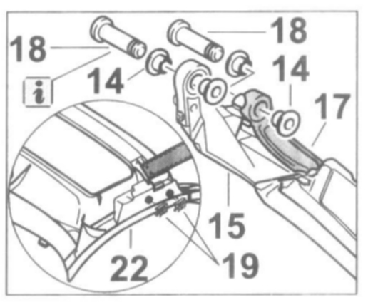 3. Press the retaining clips -19- into the pins -18-.