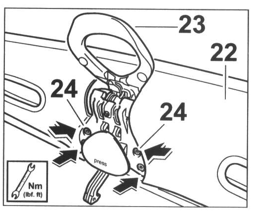 - Position bracket (stop) -12- on the roll-over bar -1- and tighten with the fastening screws -13-.