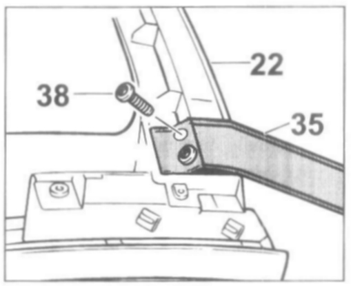- Position the tension strap -35- on the roof frame at the rear -22- and fasten the tension strap -35- with the fastening screws -38-.