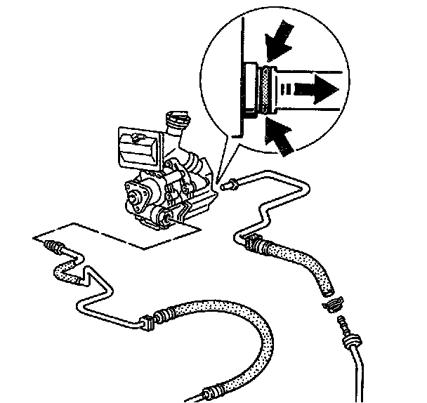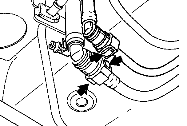To release the return line, press the red unlocking ring (arrows) and simultaneously pull the line out of the hydraulic pump.
