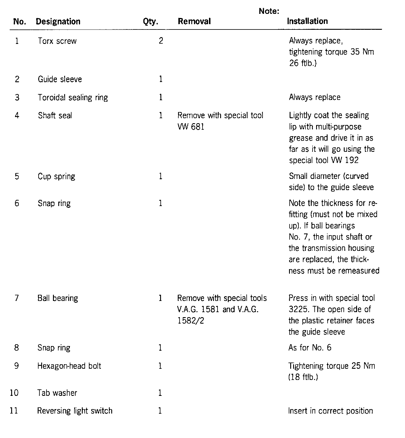 Note If the 5th and reverse gears stick or catch after adjustment of the gear changing mechanism, before removing and disassembling the transmission first remove the lock for the 5th and reverse gears, inspect it and, if necessary, replace it Instructions for disassembly and assembly
