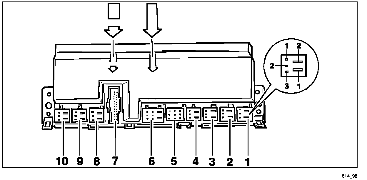 The plug consists of three individual plugs which are clipped together (Figure 133_99). Two individual plugs have 3 poles each, the third has 2 poles. When it is clipped together, plug no. 6 has 8 poles.