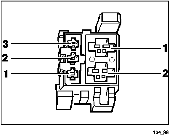 The plugs each consist of two individual plugs which are clipped together (Figure 134_99). The 2-pole plug is intended for the load circuit (motor). The 3-pole plug is the signal circuit connection (Hall-effect sensor). When they are clipped together, plug nos. 1 to 4 each have 5 poles.