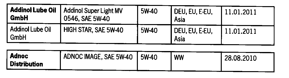 --> Manufacturer's Certificate 'Allocation of approved engine oils (36/08)'
