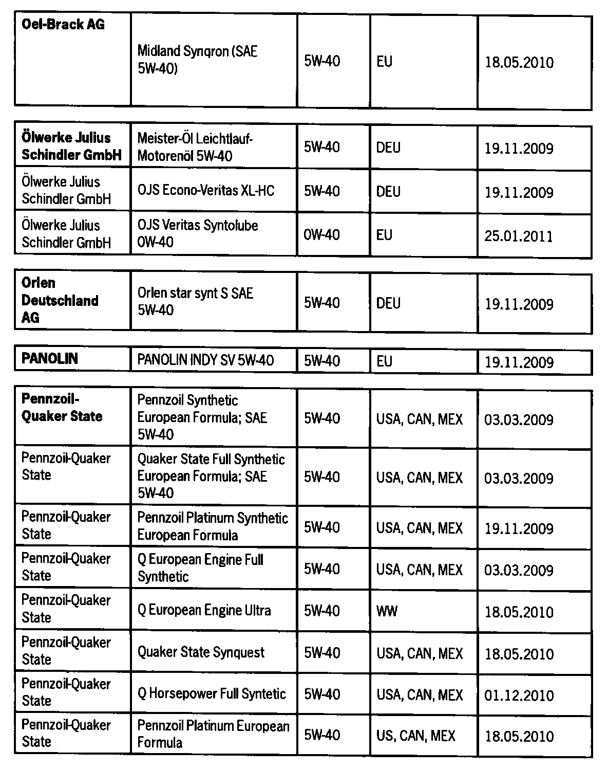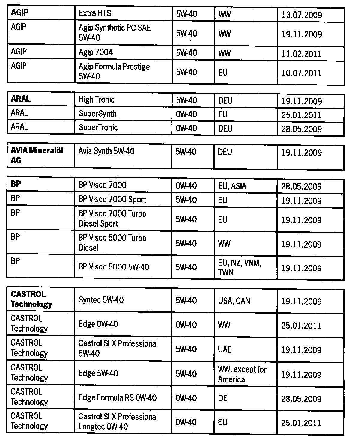 Overview of Approved Porsche A40 Engine Oils (37/08)