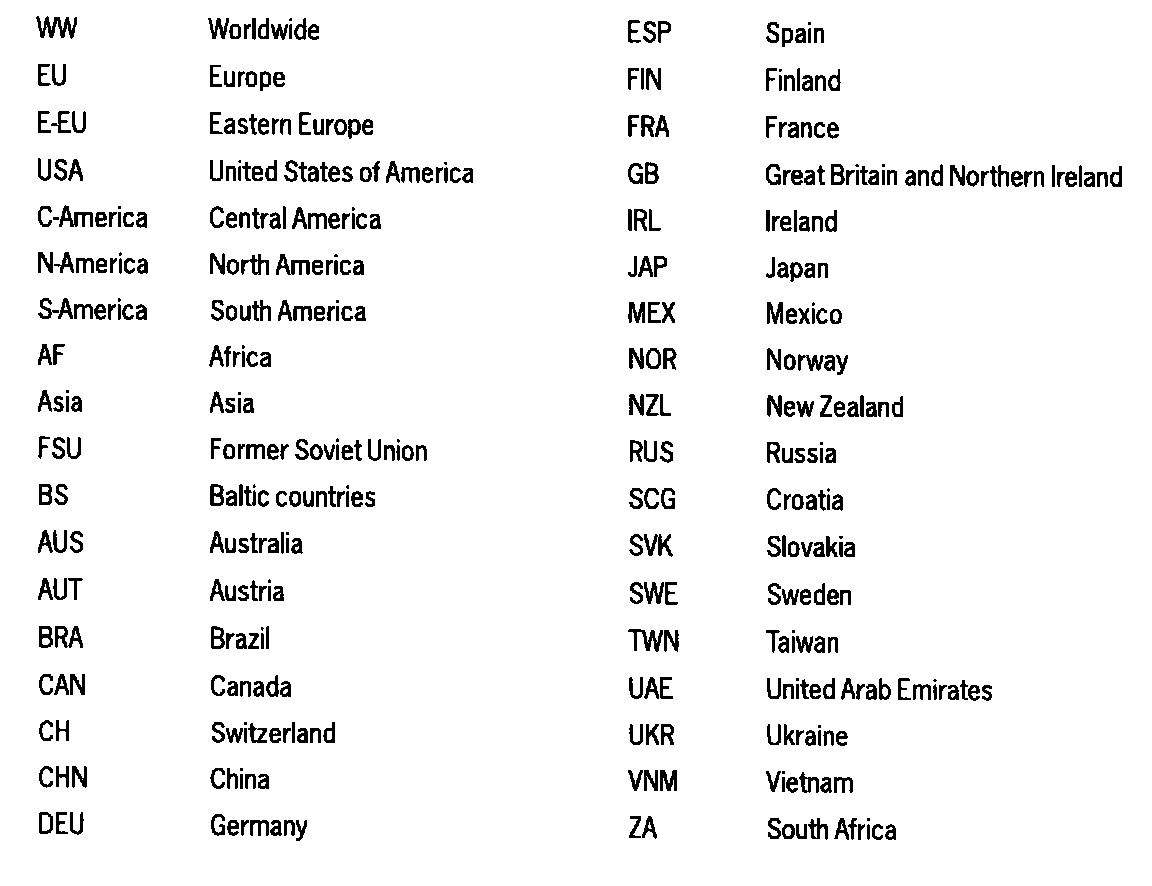 The respective sales area is also listed in order to clarify where the approved oils are available. Here are the meanings of the symbols shown.