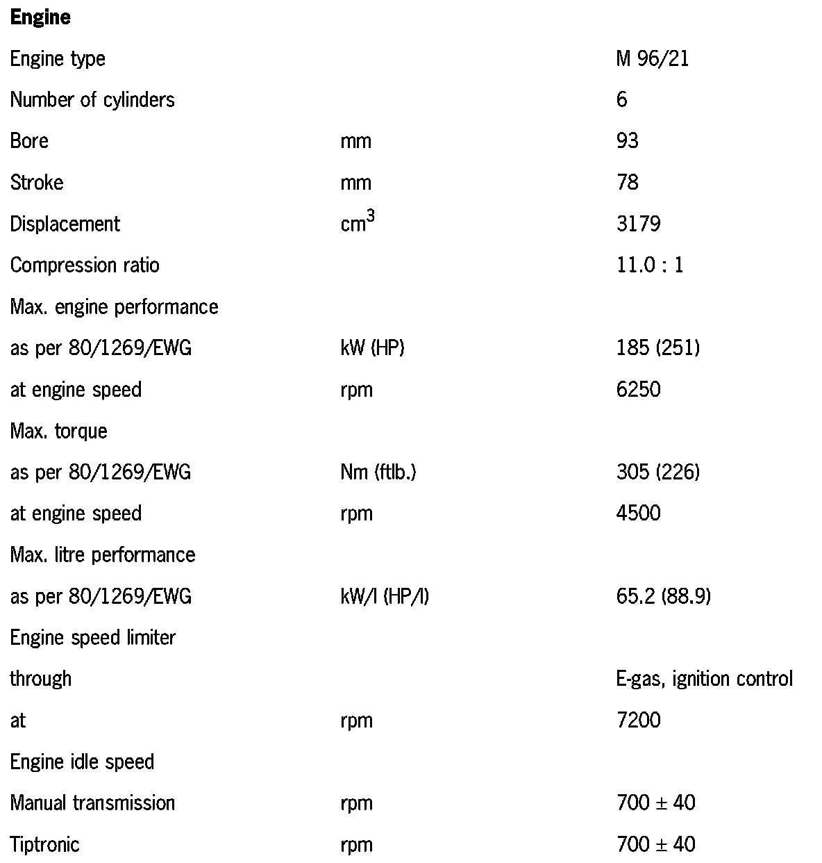 Engine Specifications Of The Boxster S 3.2 L As Of Model '00