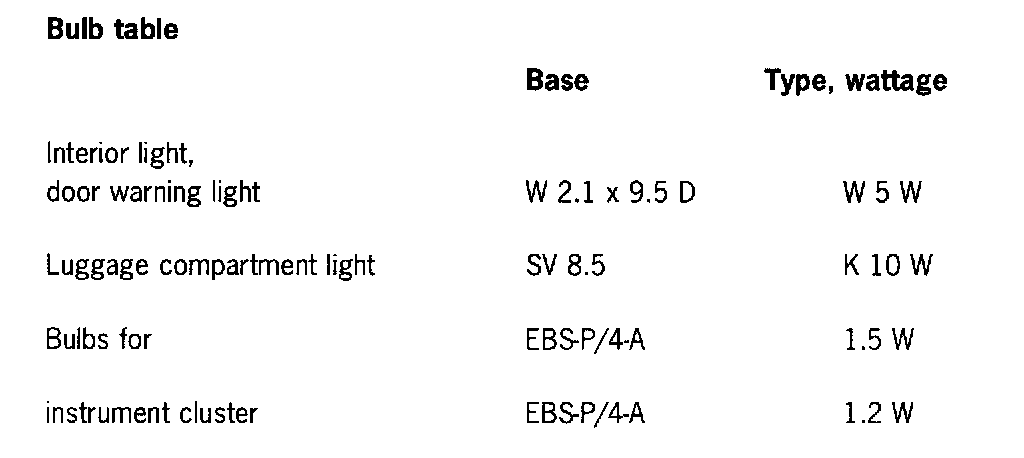 Interior Bulb Table and Installation Instructions