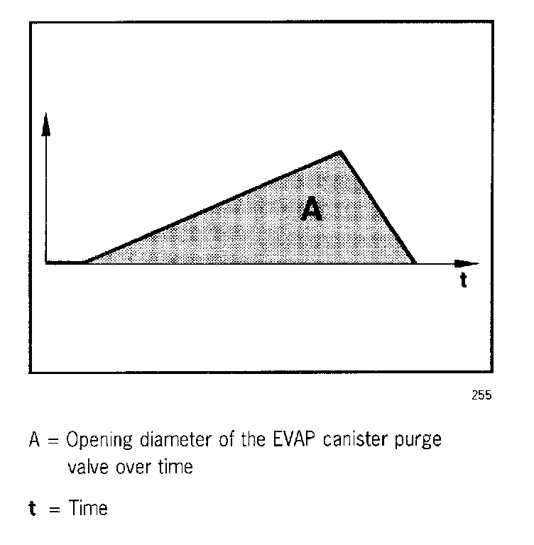 Monitoring of the fuel tank ventilation system is based on the principle that the oxygen sensor in the DME control module adapts the mixture towards lean via the open EVAP canister purge valve when additional fuel flows from the EVAP canister, and enriches the mixture in the case of fresh air coming through the purge air line of the EVAP canister. The duty cycle of the Idle Air Control (IAC) Valve is also changed.
