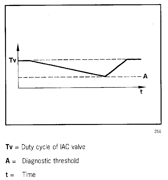 Should the additional fuel/air mixture from the EVAP canister purge valve fuel vapours and fresh air) be exactly at the ratio of lambda =1, the duty cycle of the AC valve is reduced. When the diagnostic threshold is reached, here, too, diagnosis is successfully completed.