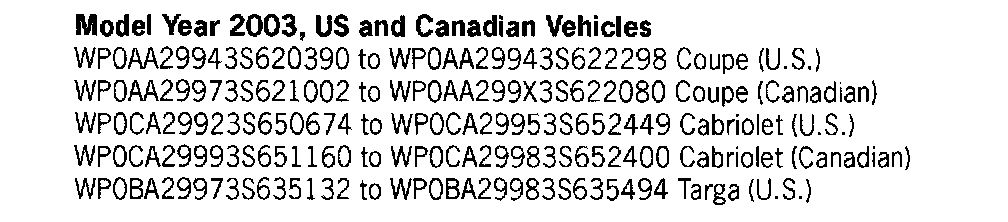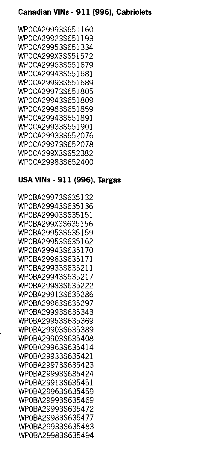 Not every vehicle in the below listed range may be affected. Use the ranges below as a general guideline. Refer to Attachment "A" to determine if a particular vehicle is eligible for this service action. Alternatively, the VIN can be checked in the Porsche e-DCS/WWS for confirmation of an open service action.