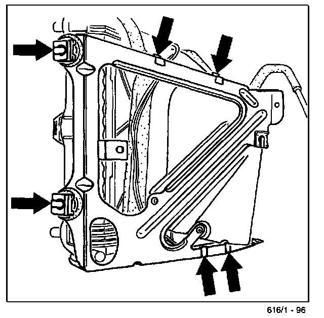 2. Detach cooler bracket from the body (1 nut 2 M8 screws). Unclip ventilation hose and ballast resistor. Undo retaining clips from the cooler and pull off the cooler bracket downwards.